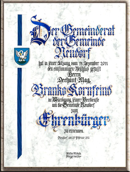 Ehrenbürgerurkunde handgefertigt