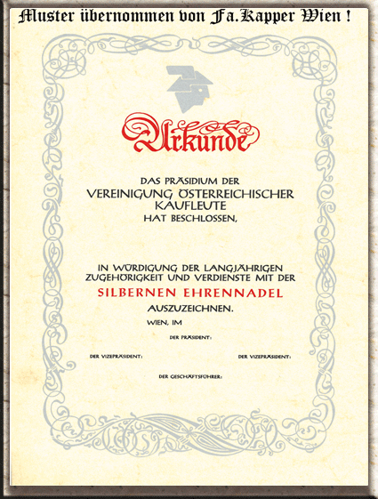 Urkunde gedruckt auf Pergamentpapier mit Ornament in Gold oder Silber.