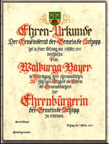 Verleihung des Ehrenbürgerrechtes.